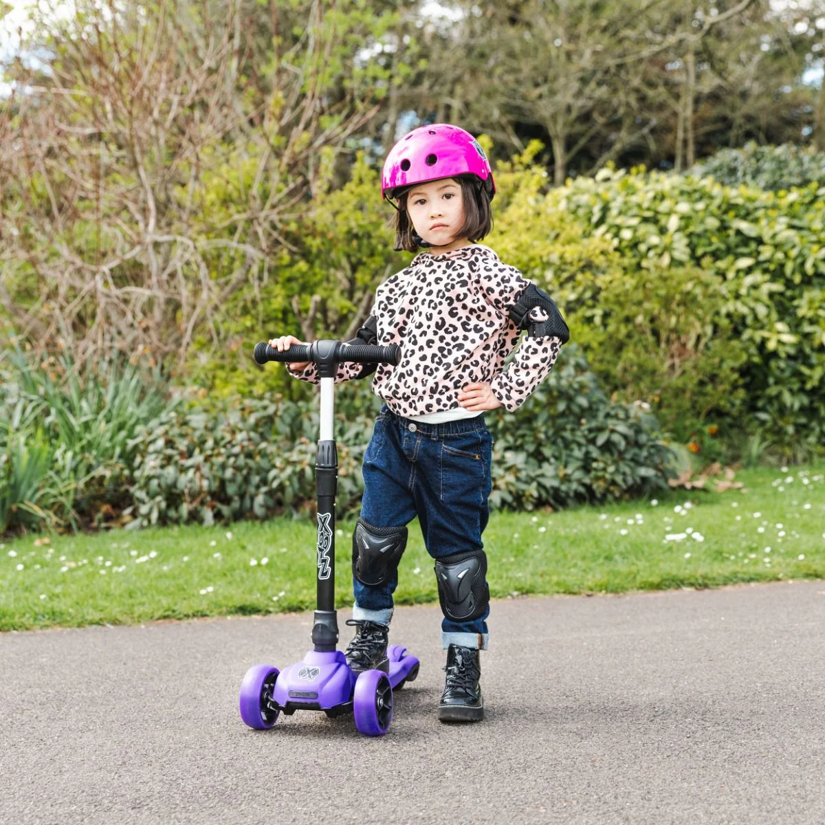 QUICK RELEASE FOLDING SYSTEM: Lightweight and portable, the Xootz Scout Tri-Scooter features a collapsible stem for easy storage and transportation to the park or playdate - H18cm x W26cm x L56cm